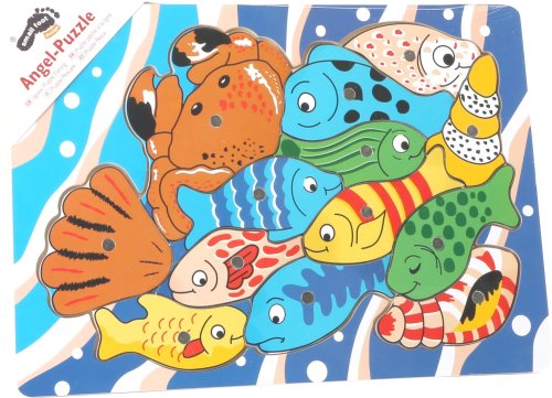 Tato rybářská hra je také skvělým rébusem! Po vylovení všech mořských živočichů z dřevěného rámu můžete pestrobarevné ryby, škeble a kraby opět uložit na jejich pozici. Skvělá kombinace puzzle a rybářské hry! Hlavní vlastnosti: obsahuje 13 mořských živočichů, rám a dvě udicetrénuje jemnou motoriku a paměť