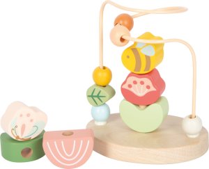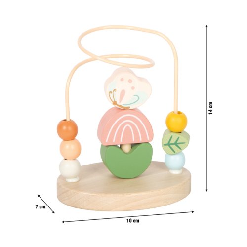 Tento kompaktní labyrint s korálky nabízí zábavnou a bezpečnou hru pro malé objevitele. Pevná kovová smyčka je osazena šesti barevnými dřevěnými prvky, které lze volně posouvat po dráze, což podporuje rozvoj úchopu, jemné motoriky a koordinace ruky a oka. V samém středu smyčky je navíc malá skládací hra, kde lze jednotlivé dřevěné prvky (včelku, motýlka, dva okvětní lístky a dva listy) skládat na sebe, čímž se rozvíjí koncentrace a obratnost dítěte.Labyrint je vyroben z kvalitního dřeva a kovu s bezpečně zaoblenými hranami a obsahuje vysoký podíl přírodního materiálu. Díky svému kompaktnímu a lehkému provedení je ideální pro hraní doma i na cestách. Tato hra spojuje hravý design s edukativními přínosy – děti se učí hravou formou zatlačovat, uchopovat, posouvat a stavět, čímž rozvíjejí své první motorické dovednosti a jemnou motoriku. Hlavní vlastnosti: kompaktní a lehká konstrukce vhodná doma i na cestáchpevná kovová smyčka s šesti barevnými dřevěnými prvky k posouváníintegrovaná skládací hra se šesti dřevěnými prvky (včelka, motýlek, 2 okvětní lístky, 2 listy)vyrobeno z kvalitního dřeva a kovu, bezpečné zaoblené hranypodporuje jemnou motoriku