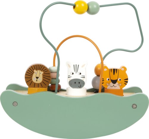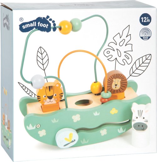 Objevujte, hrajte si a učte se – toto vše nabízí tato všestranná motorická hračka v safari vzhledu. Je vyrobená z robustního dřeva, která kombinuje dvě motorické smyčky spojené s houpačkou. Smyčky jsou vybaveny čtyřmi korálky ve dvou různých velikostech. Malí průzkumníci si zde mohou trénovat jemnou motoriku. Obratnost a koordinace oko-ruka se také trénuje pomocí hry vkládání tvarů se třemi roztomilými figurkami zvířátek, když je vkládáte do příslušných otvorů. Integrovaná hra a funkce houpání poskytují extra porci zábavy a tréninku dovedností. Dlouhotrvající zábava z hraní a učení je zaručena. Díky detailnímu designu a modernímu zbarvení je tato dřevěná hračka s vysokým podílem viditelného dřeva opravdovým lákadlem v dětském pokoji. Tato výchovně hodnotná učební hračka podporuje motorický rozvoj dítěte a je zároveň zdrojem radosti a objevování. Hlavní vlastnosti: k rozvoji motorických dovednostíkoordinace pohybů, orientace v prostoru