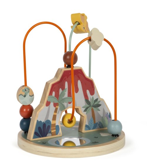 Tento korálkový labyrint je nejen zábavný, ale je také přínosem pro rozvoj jemné motoriky a koordinace ruka-oko. Je vyroben z robustního dřeva a inspirován dinosaury a prostředím, ve kterém žili. Součástí labyrintu jsou 2 motorické smyčky, na jedné jsou 4 a na druhé 6 korálků různých barev, tvarů a velikostí. Na základně ve tvaru kruhu je umístěno kulaté zrcátko, ve kterém je všechno vidět z jiné perspektivy. Vizuálním vrcholem je sopka chrlící lávu, která funguje jako centrální bod pro korálkové bludiště.S hračkami z produktové řady "Dino" jsou tématem fascinující prehistoričtí tvorové, kteří upoutají pozornost lidí všech věkových kategorií. Tyto dřevěné hračky podporují rozvoj motorických dovedností, inspirují dětskou kreativitu a představivost a povzbuzují děti, aby se dozvěděly více o přírodě a historii těchto pravěkých obrů. Hlavní vlastnosti: kvalitní barevné zpracování s integrovaným zrcátkemrozvíjí koordinaci ruka-okotrénuje jemnou motoriku Značka a certifikát FSC® (Forest Stewardship Council) zaručuje, že dřevo, ze kterého byl produkt vyroben, nebylo vytěženo nelegálně a pochází z lesů obhospodařovaných šetrným či přírodě blízkým způsobem, ve kterém jsou dodržovány přísné environmentální a sociální požadavky. Značka FSC® na výrobku znamená, že svým nákupem pomáháte chránit lesy a podporujete šetrné, odpovědné či přírodě blízké hospodaření, díky kterému jsou naše lesy stabilnější, zdravější, mají přirozenou druhovou skladbu a lépe odolávají negativním následkům klimatických změn.