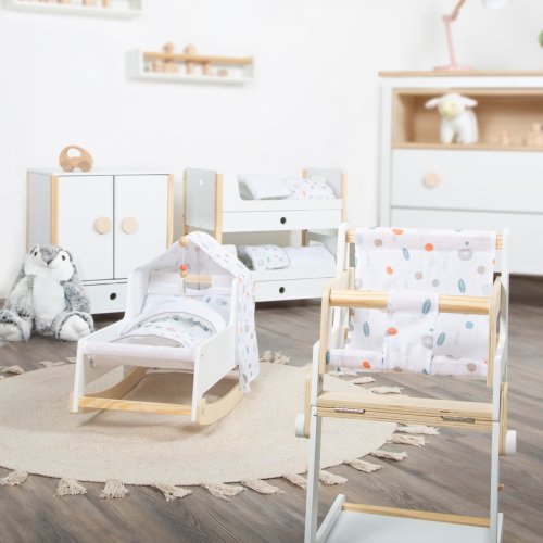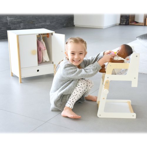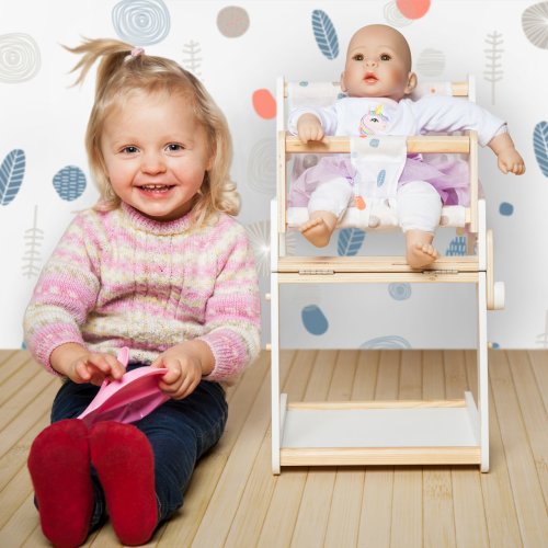 Multifunkční vysoká židlička pro panenky, která jistě nadchne mladší i starší „rodiče“ panenek. Má jednoduchý skandinávský design, je vyrobena z kvalitních materiálů. Jen pár pohybů rukou a vysoká židle může být přeměněna v židličku se stolem. Je vhodná pro panenky a plyšáky do ~46 cm. Díky jednoduchému designu se hodí do každého interiéru. Je viditelně dřevěná a má zaoblené hrany. Hlavní vlastnosti Skandinávský designPro panenky a plyšáky do 46 cmZaoblené hrany Little Button Řada atraktivního příslušenství pro panenky Little Button nabízí pestrou paletu výrobků, od kočárku přes jídelní židličku až po skříň. Zákazníky snadno zaujmou jednotným funkčním a decentním designem využívajícím přímé linie a střídmé neutrální barvy. Díky tomu spolu mohou vytvořit ucelené harmonické soupravy, které vkusně doplní moderní interiér. Důmyslná konstrukce a kvalitní zpracování pomáhají zajistit vysokou stabilitu, bezpečnost a dlouhou životnost. Založte s jejich pomocí stylový koutek pro panenky, kde mohou Vaše děti rozvíjet svou fantazii a pečovatelské dovednosti.