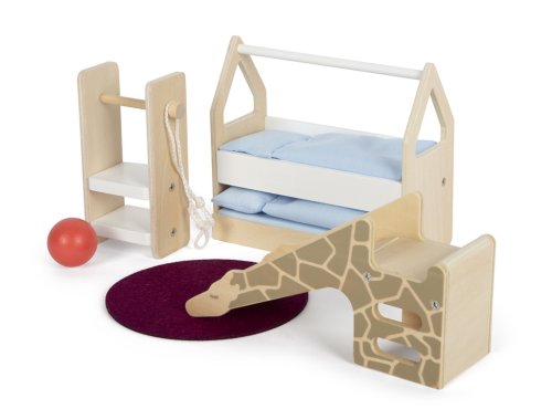 Takový krásný pokojíček! Jistě se bude líbit i Vašim dětem. Tento dětský pokojíček je nejen krásným doplňkem pro každý domeček pro panenky, ale také motivuje děti ke kreativní hře a rozvíjí jejich představivost. Je vyroben tak, aby co nejvíce odpovídal skutečnému nábytku. Součástí je postel ve tvaru domečku s vysouvacím lůžkem pro hosty, ložní prádlo, police s tyčí na pověšení oblečení, míč, švihadlo a velká hrací podložka. A to nejlepší nakonec: skluzavka Žirafa, která byla vytvořena podle skutečné skluzavky pro děti Žirafa Wildlife (číslo zboží:.12424). Hlavní vlastnosti: moderní a elegantní nábytek do dětského pokojíčkuskluzavka Žirafa vytvořena podle skutečné dětské skluzavkyrozvíjí fantazii a motivuje ke kreativní hře