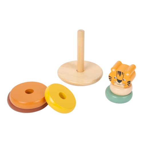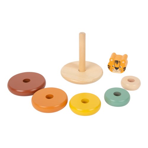 Nasazovací věž nebo rozviklaná pyramida? Obojí! Tento přátelský tygr se ukáže v plné kráse jakmile děti poskládají všechny dřevěné kroužky na sebe ve správném pořadí. Nasazovací zvířátko o 7 kusech trénuje koordinaci ruka-oko, také porozumění tvarům a velikostem. Rozviklaná věž, která je vzdělávací hračkou pro děti. Motorická hra v moderních barvách vyrobená z robustního dřeva. Hlavní vlastnosti: pastelové barvyzákladna a 6 dílů