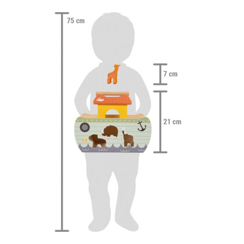 Vydejte se na velké dobrodružství Noemovy archy. Robustní dřevěná loď s madlem pro snadné přenášení a odnímatelným víkem. Tato loď v podobě Noemovy archy je fascinující herní svět, který dětem přináší pestrou a dlouhotrvající zábavu. Hra má 15 dřevěných figurek, které jsou snadno uchopitelné pro dětské ruce. Obsahuje 6 párů zvířátek, 2 lidské figurky a žebřík. Všechny figurky zvířat perfektně zapadají do otvorech v lodi a pomáhají tak trénovat motorické dovednosti. Díky odnímatelnému víku s rukojetí lze loď snadno otevřít a figurky zase vyjmout. Precizně propracovaný design, krásné ilustrace je v dětském pokoji opravdový poutač. Hra podporuje rozvoj motorických dovedností, rozpoznávání tvarů a zároveň podporuje dětskou představivost a povzbuzuje děti, aby znovu a znovu vytvářely vlastní příběhy a dobrodružství. Noemova archa se skvěle hodí k ostatním hračkám a hrám z řady "Safari". Hlavní vlastnosti: vkládací dílky jsou snadno uchopitelné pro dětské rucedesign s krásnými ilustracemipodporuje rozvoj motoriky, koordinace ruka-oko a rozpoznávání tvarůinspiruje dětskou fantazii a povzbuzuje je k vyprávění příběhůideální pro doplnění s dalšími motorickými hračkami z řady "Safari"