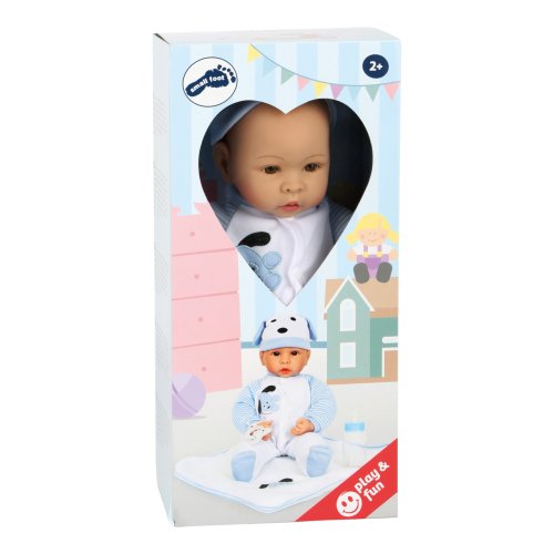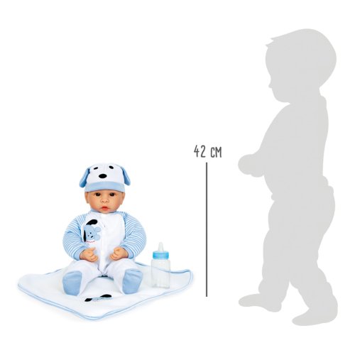 Malý Beno je velký milovník psů. Panenka má nasazenou čepičku a dupačky s roztomilým modro-bílým motivem štěněte. Balení zahrnuje kojeneckou lahvičku, dudlík, který se dá vložit do pusy, a měkkou přikrývku. Hlavní vlastnosti: obsahuje oblečení, kojeneckou láhev, dudlík a měkkou deku