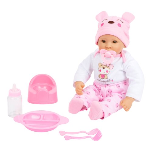 Panenka Marie s měkkým látkovým tělem, plastovou hlavičkou a končetinami se spoustou doplňků. Oblečení pro panenku se snadno obléká i svléká. Součástí balení je i barevně sladěný dudlík, sada nádobí, kojenecká láhev a nočník. Obzvláště realistický výraz obličeje s krásnýma nemrkacíma očima. S panenkami s měkkým tělem si hrají mladší děti, jejichž motorické dovednosti ještě nejsou tak vyvinuté. Hraní s panenkami podporuje rozvoj představivosti a sociálních dovedností. Dokonalý společník na hraní a mazlení díky měkkému tělu. Tato roztomilá panenka je skutečným obohacením každé sbírky panenek. Hlavní vlastnosti: měkké látkové tělíčkorozvíjí představivost a sociální dovednostisoučástí balení je oblečení panenky, nádobí a nočník