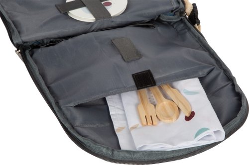 Proměňte každý piknik v nezapomenutelný zážitek s piknikovým batohem! Tento praktický batoh obsahuje vše, co potřebujete pro pohodlné stolování venku: dřevěný talíř, hrnek a jídelní náčiní pro dvě osoby. Dále v něm naleznete termosku, skládací nůž a piknikovou deku. Prostorná vnitřní kapsa na zip umožňuje bezpečné uložení veškerého příslušenství díky pružným páskům a suchému zipu. Nastavitelné ramenní popruhy poskytují optimální pohodlí při nošení a umožňují správné přizpůsobení batohu dítěti. Moderní vzhled, kombinující neutrální bílou barvu, přírodní dřevo a populární trendy barvy, harmonicky zapadá do každého dětského pokoje a skvěle se hodí k dalším produktům z řady „Tasty“. Tento batoh je ideálním společníkem pro nezapomenutelné piknikové chvíle, kreativní hraní a výlety do přírody! Balení obsahuje : 1 batoh, 1 termoska, 1 pikniková deka, 2 lžíce, 2 nože, 2 vidličky, 2 hrnky, 2 talíře, 1 kapesní nůž. Hlavní vlastnosti: moderní piknikový batoh se spoustou příslušenství pro dvě osobypodporuje rozvoj jemné motoriky, sociálních dovedností a každodenních dovednostízavinovací zip a oddělená vnitřní kapsa pro snadné skladovánípružné elastické pásky bezpečně drží příslušenstvínastavitelné ramenní popruhy pro vysoký komfort nošenímoderní design v kombinaci s bílou, přírodním dřevem a trendy barvamizabaleno v krabicikompatibilní s dalšími produkty z řady „Tasty“