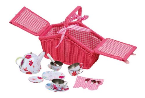 Moderní piknikový koš s designem ve stylu 70. let s kovovým nádobím. Tento koš vyrobený z umělého proutí je dostatečně prostorný pro celou sadu nádobí, ale také i pro malé dobroty, nebo další hračky. Při zalévání šálku čaje nebo kávy do plechového nádobí s květinovými vzory udělá opravdu skvělý dojem. Perfektní společník na výlety s panenkami. Sada má celkem 18 kusů. Hlavní vlastnosti: podporuje rozvoj sociálních dovedností sada 18 kusů