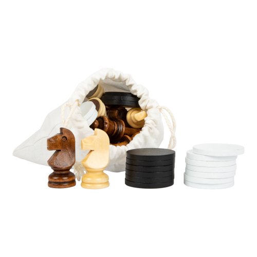Při hře v šachy nebo dámu na velké dřevěné hrací desce je zapotřebí taktika, zručnost a promyšlené tahy. Mimořádně velké herní figurky usnadňují jejich umístění i hráčům s malýma nebo nejistýma rukama. Dodává se s látkovou taškou. Kdo udělá nejlepší tah? Tyto dvě extra velké klasické deskové hry slibují dvojnásobnou zábavu pro malé i velké. Dvě společenské hry, které vyžadují logické myšlení a soustředění a zároveň nabízejí maximální herní zábavu. Klasicky navržené šachové figurky a figurky na dámu lze bezpečně uložit do přiloženého látkového sáčku. Tato sada klasických her zaručuje velkou zábavu při hraní a nesmí chybět v žádném dětském pokoji. Hlavní vlastnosti: procvičuje zručnost, koncentraci a logické myšlenívelké herní figurky pro snadné uchopení2 v 1praktické balení