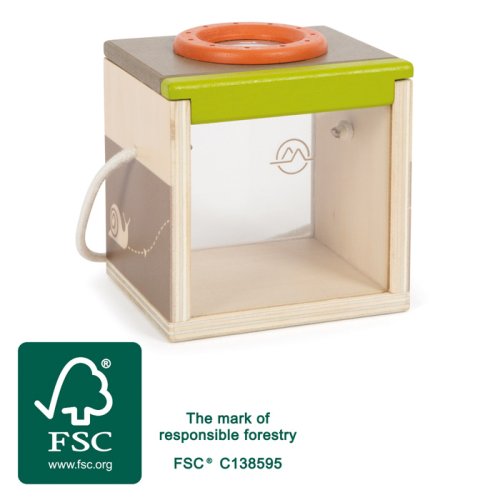 Děti rády zkoumají přírodu kolem sebe. Tento box na pozorování hmyzu je ideální hračkou pro malého průzkumníka. Stačí se připravit k pečlivému odchytu a může začít kontrola hmyzu všeho druhu. Box na hmyz je vyroben z odolného dřeva s certifikací FSC®. Nabízí skvělý pohled na pohybující se zvířátka ze tří stran díky plexiskla a lupy nahoře. Do útrob pozorovacího boxu se vejdou větvičky a listy, takže chycený hmyz lze pozorovat bez toho, aby byl hmyz ve stresu, je chráněný. Box má větrací otvory, šňůrku pro přenášení jednou rukou a pohyblivé plexi okénko, které lze vysunout nahoru. Sofistikované výzkumné zařízení pro vzrušující túry do přírody, expedice a pozorování na zahradě, v lese nebo na poli. Hodí se také pro hravý výzkum mravenců, cvrčků nebo létajícího hmyzu, jako jsou berušky nebo motýli. Díky vysokému množství viditelného dřevěného materiálu, designu v zemitých tónech a přírodních zelených barvách, zaobleným hranám a hezkým ilustracím je tento pozorovací box opravdovým poutačem pro každé dítě. Upozornění: box na hmyz není určen k dlouhodobému uschování živých tvorů a měl by sloužit pouze ke krátkodobému pozorování. Hlavní vlastnosti: vyroben z odolného dřeva s certifikací FSC®sofistikované výzkumné zařízení design v zemitých tónechedukativní hračka Značka a certifikát FSC® (Forest Stewardship Council) zaručuje, že dřevo, ze kterého byl produkt vyroben, nebylo vytěženo nelegálně a pochází z lesů obhospodařovaných šetrným či přírodě blízkým způsobem, ve kterém jsou dodržovány přísné environmentální a sociální požadavky. Značka FSC® na výrobku znamená, že svým nákupem pomáháte chránit lesy a podporujete šetrné, odpovědné či přírodě blízké hospodaření, díky kterému jsou naše lesy stabilnější, zdravější, mají přirozenou druhovou skladbu a lépe odolávají negativním následkům klimatických změn.