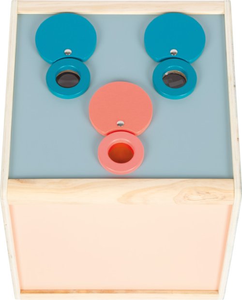 Zbystřete své smysly hravou formou. Tento prostorný senzorický a hmatový box z produktové řady "Sensory" se dvěma bočními otvory nabízí řadu možností pro objevování předmětů různými způsoby - dotykem, viděním, čichem a sluchem. Hračka byla navržená pro podporu rozvoje smyslů a motorických dovedností. Je vhodná i pro ergoterapeutické účely. Lupa, fazetová čočka a červená čočka umožňují nový pohled na předměty, které mají být prozkoumány uvnitř boxu. Tři dřevěné čočky lze snadno vyjmout. Otvory na horní straně lze pak použít k prohlížení, očichávání a poslouchání. Úhlem otevření zadních dvířek a horních výklopných klapek lze regulovat množství světla, které do boxu proniká. Dřevěný box lze plnit různými předměty přes zadní dvířka s magnetickou západkou. Látkové návleky na bočních otvorech zakrývají pohled dovnitř boxu a zároveň zajišťují příjemně měkký přístup. Velikostí jsou vhodné pro děti i dospělé. Vysoce kvalitní a zajímavý smyslový box v moderních barvách slibuje všestrannou a dlouhotrvající zábavu. Ať už se hraje jako paměťová hra, nebo jako hra na hledání, nebo jako hra na rozpoznávání – je to zajímavá, hmatová a smyslová hra, kterou lze hrát samostatně nebo s více hráči, pro ještě větší vzrušující zábavu. Rukávníky jsou připevněny pomocí suchých zipů, díky čemuž jsou odnímatelné, takže je lze prát v ruce na nízkou teplotu. Hlavní vlastnosti: hra je vhodná také do školek nebo družinpomáhá rozvoji poznávacích a motorických dovednostívhodná i pro ergoterapeutické účely Ocenění hračky: Deutscher Spielzeugpreis 2024