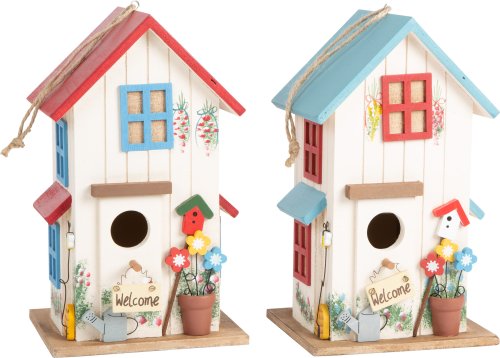 Tyto malé domečky mají mnoho detailů jako okenice, ozdoby, balkón či terasu a jsou překrásným bydlištěm pro ptáčky. V zadní části najdete otevíratelná vrátka, ze shora poutko k zavěšení. Vyrobeno z glazované překližky. Hlavní vlastnosti: možnost sledovat hnízdění ptáčkůkrásný design