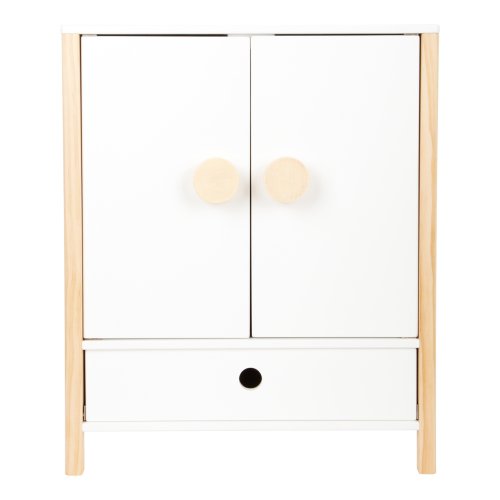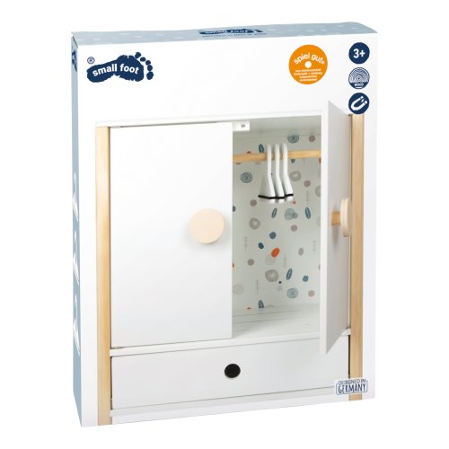 Všechno oblečení pro panenky po ruce. Prostorná dřevěná skříň udělá dojem na každého z vás nejen díky svým jednoduše otevíratelným dveřím. Jednoduchý skandinávský design, uvnitř jemné barevné tóny. Po otevření skříně najdete na šatní tyči ramínka, také oddělitelné poličky a šuplík. Můžete tak všechno oblečení uložit dle vlastního gusta, můžete také použít vlastní ramínka. Díky této hračce se děti naučí důležitosti úklidu a také jak se dobře starat o vlastní oblečení, aby nám vydrželo co nejdéle. Hlavní vlastnosti Prostorná dřevěná skříňJednoduše otevíratelné dveřeŠatní tyč, ramínka, šuplíkZaoblené hrany, viditelně dřevěnáGenderově neutrální barvaSkandinávský lineární design Little Button Řada atraktivního příslušenství pro panenky Little Button nabízí pestrou paletu výrobků, od kočárku přes jídelní židličku až po skříň. Zákazníky snadno zaujmou jednotným funkčním a decentním designem využívajícím přímé linie a střídmé neutrální barvy. Díky tomu spolu mohou vytvořit ucelené harmonické soupravy, které vkusně doplní moderní interiér. Důmyslná konstrukce a kvalitní zpracování pomáhají zajistit vysokou stabilitu, bezpečnost a dlouhou životnost. Založte s jejich pomocí stylový koutek pro panenky, kde mohou Vaše děti rozvíjet svou fantazii a pečovatelské dovednosti.
