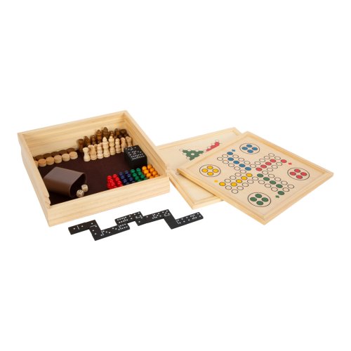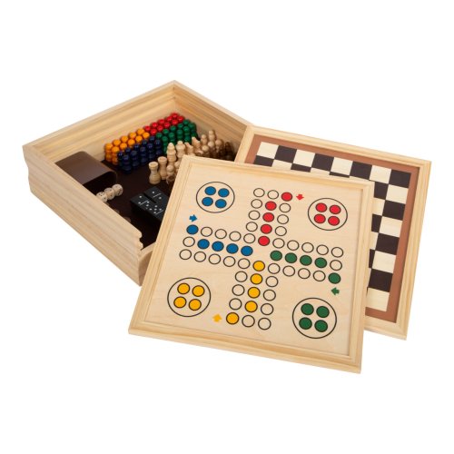 Soubor her pro celou rodinu se všemi důležitými klasickými hrami a oblíbenými společenskými hrami. Ať už domino, ludo, šachy, dáma, mlýn, Halma & Co. Tato kolekce her s hracími deskami vyrobenými z robustního dřeva obsahuje vše, co děti i rodiče potřebují pro zábavné herní odpoledne. V pevné dřevěné krabici s plstěným dnem se nic neztratí. Hlavní vlastnosti: dlouhotrvající zábavavše má své místo v dřevěné krabicivysoce kvalitní materiálynávody ke hrám