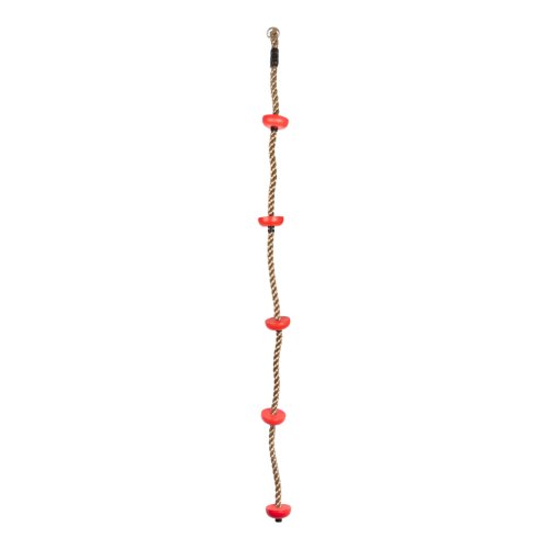 Klasické, robustní šplhací lano se stupínky čeká na všechny rozené lezce. Pomáhá dětem zábavnou formou zesílit a trénovat koordinaci pohybu a rovnováhu. Silné plastové lano je odolné povětrnostním vlivům a lze jej bez potíží uplatnit v exteriéru, na dětském hřišti. Vybaveno kovovým kroužkem k zavěšení. Hlavní vlastnosti:lano s 5 stupínkymax. nosnost 100 kgrobustní, odolné provedení