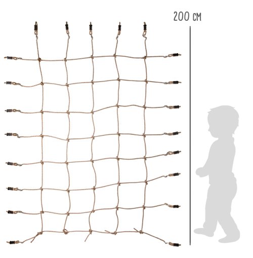 Šplhací síť je nezbytným doplňkem moderního dětského hřiště, děti mohou s jejím přispěním zesílit a zdokonalit hrubou motoriku. Je vyrobena z příjemně poddajného, ale odolného lana a umožňuje upravovat velikost ok. Konce lan jsou opatřeny robustními plastovými objímkami a kovovými průvleky, upevnění sítě je s jejich pomocí velmi snadné a spolehlivé. Síť je určena k upevnění do rámu, který není součástí balení. Hlavní vlastnosti: nosnost 100 kgrozměry sítě včetně upínacích popruhů 240×230 cm, rozměry vnitřní sítě 170x100 cm, velikost oka cca 25×25 cmdoporučené rozměry rámu 150×200 cm (dle tloušťky rámu), rám není součástí baleníupínací popruhy jsou pouze na bočních a horní straně sítě