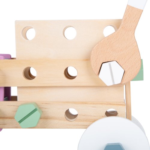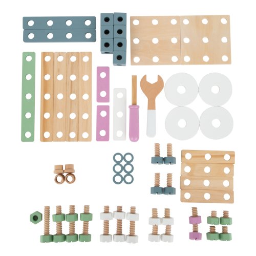 Video je pouze ilustrační, zobrazuje příbuzný produkt. Stavění a kutilství v nordickém stylu! Destičky s vyvrtanými otvory, matkami, šrouby a další doplňky, s kterými si mohou mladí stavební inženýři a inženýrky opravdu vyhrát. Za pomoci klíče a šroubováku mohou všechny součástky složit nebo rozložit. Ať už je to traktor, lokomotiva nebo jeřáb, představivosti se meze nekladou. S dokončenými modely si děti mohou hrát. Kreativní hračka, která je perfektní pro mladé stavitele. Dřevěný set, pomocí kterého může každé dítě změnit své představy v realitu. V balení najdete klíč, šroubovák, dřevěné perforované pásky různých tvarů a velikostí, šroubky a matky... Viditelně dřevěný materiál v přírodní barvě i v pastelovém provedení. Kompatibilní s produkty ze série Miniwob. Hlavní vlastnosti 67 dílkůPlně dřevěnéNordický design