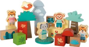 Spousta zábavy se stavěním i poznáváním světa zvířat! Tato barevná 50dílná dřevěná stavebnice vyrobená ze 100% certifikovaného FSC® dřeva přináší do dětského pokoje veselý svět džungle plný zvířecích dobrodružství. Sada potěší různě tvarovanými a potištěnými stavebními kostkami, doplněnými o roztomilé figurky zvířat, jako jsou tygři, pandy, opičky a ptáčci. Díky široké škále tvarů, barev a motivů mohou děti stavět zvířecí krajiny, vysoké věže nebo kreativní scény – fantazii se meze nekladou! Hra s kostkami rozvíjí jemnou motoriku, koordinaci a prostorové myšlení, zatímco zvířecí figurky a potištěné prvky s listy, rostlinami a přírodními motivy inspirují děti k vyprávění vlastních příběhů.Tato stavebnice je nejen krásnou hračkou, ale také vzdělávacím nástrojem, který podporuje kreativitu, představivost a soustředění. Díky velkému podílu přírodního dřeva, kvalitním ilustracím a jemnému barevnému ladění působí přirozeně a esteticky – skvěle zapadne do každého dětského pokoje. Hlavní vlastnosti: kompletní sada z FSC® 100% certifikovaného dřeva50 různých dílků včetně zvířátek a rostlinných motivůdva roztomilí ptáčci jako doplňující figurkykombinace barevných a přírodních kostekpodporuje motoriku, kreativitu a představivostskvěle ladí s dalšími hračkami z řady „Přátelé z džungle" Značka a certifikát FSC® (Forest Stewardship Council) zaručuje, že dřevo, ze kterého byl produkt vyroben, nebylo vytěženo nelegálně a pochází z lesů obhospodařovaných šetrným či přírodě blízkým způsobem, ve kterém jsou dodržovány přísné environmentální a sociální požadavky. Značka FSC® na výrobku znamená, že svým nákupem pomáháte chránit lesy a podporujete šetrné, odpovědné či přírodě blízké hospodaření, díky kterému jsou naše lesy stabilnější, zdravější, mají přirozenou druhovou skladbu a lépe odolávají negativním následkům klimatických změn.