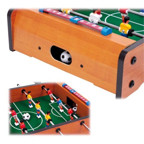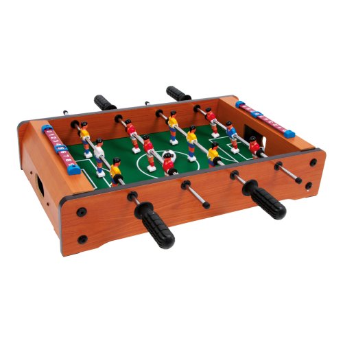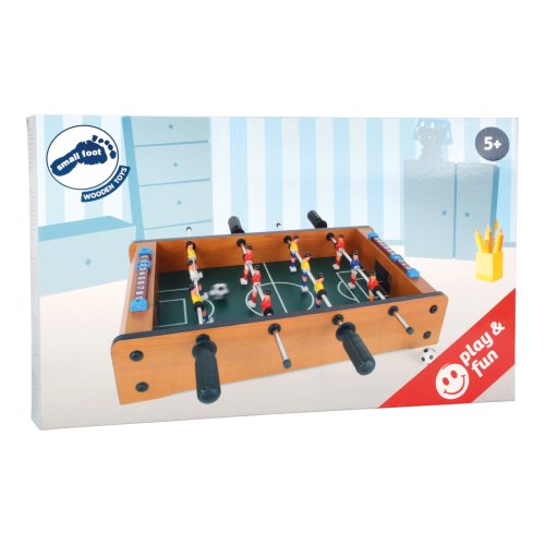 Tento malý stolní fotbal je zábavná hra. Každý tým má 6 hráčů. Na své si přijdou malí i velcí fotbaloví fanoušci. Rychlá hra trénuje koordinaci ruka-oko a přináší spoustu zábavy - takový je stolní fotbal. V balení najdete 2 ks míčků. Hračka je vyrobena z lakovaného dřeva. Fotbálek je vybaven počítadly gólů. Hlavní vlastnosti: trénuje koordinaci ruka-okovčetně 2 míčkůpočítadlo gólů