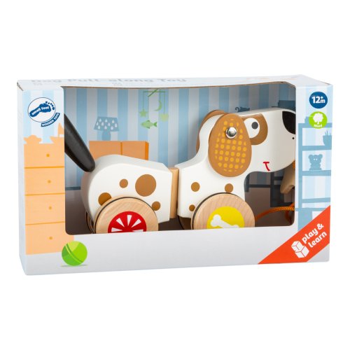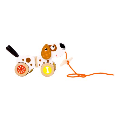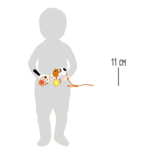 Ti nejmenší mohou tohoto roztomilého pejska táhnout za sebou. Díky gumovým kroužkům na pneumatikách je pejsek velmi tichý. Při jízdě vrtí ocáskem a jako odměna mu slouží kost na provázku. Malé děti mohou tohoto pejska tahat za sebou. Hlavní vlastnosti: na provázkurozvíjí koordinaci pohybů dětís gumovým proužkem pro tichý chod