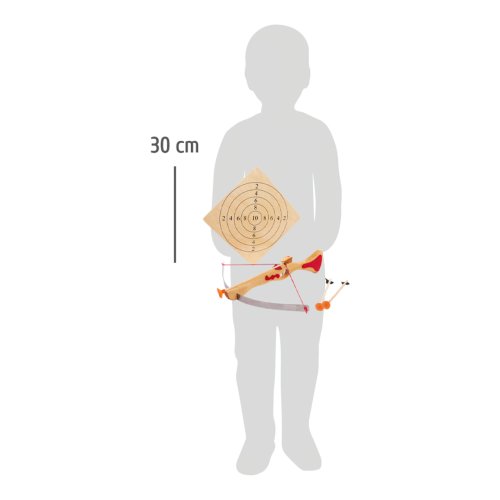 S touto kuší mohou děti prokázat svou přesnost. Střelecká zábava může probíhat bez váhání, protože dřevěná sportovní kuše střílí pouze dřevěné šípy s přísavkami. Vysoce kvalitní gumové krytky umožňují, aby se šipky lepily na hladký povrch. Hlavní vlastnosti: součásti balení je kuše, terč a 2 šípy s přísavkoutrénuje přesnost