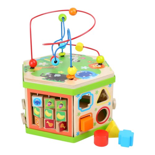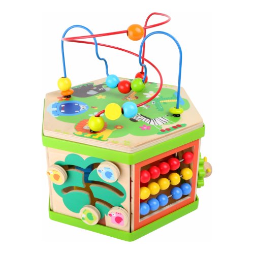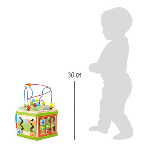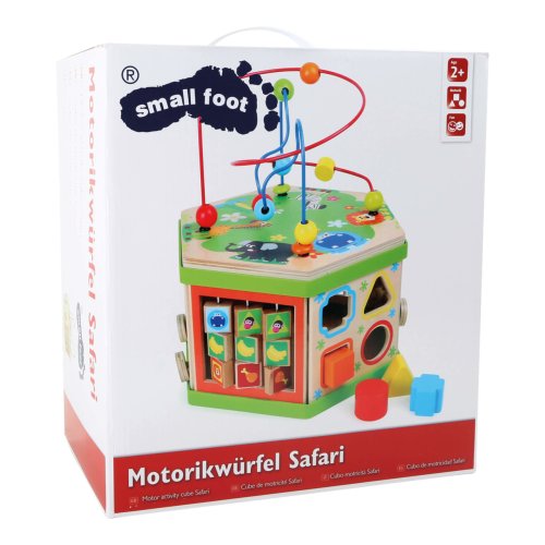Představujeme Small Foot Velká motorická kostka safari – revoluci v dětské zábavě a vzdělávání! S touto robustní dřevěnou kostkou, ozdobenou roztomilými safari zvířátky, otevíráte dveře do světa plného objevů, kde každá hratelná plocha je novým dobrodružstvím. Představte si, že vaše dítě objevuje radost z učení, zatímco jeho prstíky se snaží ovládnout posuvné pravítko nebo se směje, když skluzavka dopraví zvířátko do cíle. Sedm interaktivních ploch Small Foot Velké motorické kostky safari je navrženo tak, aby podněcovalo zvědavost a touhu poznávat. Od posilování jemné motoriky až po koordinaci oko-ruka, tato kostka je víc než hračka - je to brána k nekonečnému objevování. Není to jen o hře. Small Foot Velká motorická kostka safari je také designový skvost, který se pyšní výrobou v Německu, zaručující kvalitu a bezpečnost, které si váš malý průzkumník zaslouží. Vnitřní úložný prostor kostky slouží jako tajná komora pro zásuvné prvky, udržuje pořádek a zároveň podněcuje dětskou fantazii. A s potiskem atraktivních zvířecích ilustrací se stane i okouzlujícím doplňkem každé dětského pokoje. Přidejte do života vašeho dítěte rozměr kreativity a učení, který bude posilovat jeho dovednosti každý den. Hlavní vlastnosti: veselý barevný safari designmultifunkční aktivity motorická kostka na 7 hratelných plocháchrozvíjí jemnou motoriku, koordinaci oko-ruka a soustředěníinteriér nabízí úložný prostor pro zásuvné prvkyvhodné od 12 měsíců