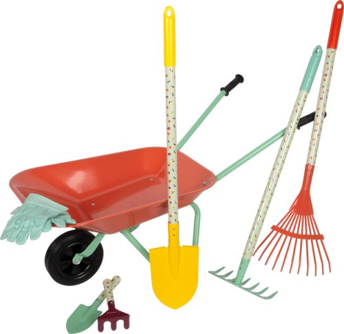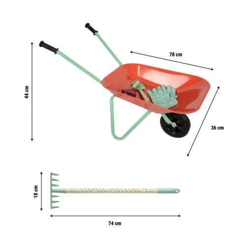 Tato velká zahradní sada s kolečky nabízí vše potřebné pro malé zahradníky. Obsahuje zahradní kolečko, tři velké nástroje (hrábě, rýč a motyku), dva menší ruční nástroje (lopatku a ruční hrábě) a odolné dětské zahradní rukavice. Děti tak mají ideální vybavení pro kreativní práci na zahradě, pískovišti i na pláži. Stabilní kolečko s pevnými koly se snadno ovládá a umožňuje pohodlně převážet zeminu, písek i malé zahradní poklady. Velké i malé nástroje jsou přizpůsobené dětským rukám, takže kopání, hrabání, sázení nebo stavění na pískovišti je snadné a zábavné. Veselé motivy zvířátek navíc dodávají celé sadě hravý vzhled. Velkou výhodou jsou také odolné pracovní rukavice v dětské velikosti, které chrání malé ruce při práci. Moderní barevné provedení dělá ze sady atraktivní doplněk pro každé venkovní dobrodružství. Ať už na zahradě, na pískovišti nebo u vody, zahradní sada s trakařem přináší dětem radost z pohybu a podporuje jejich vztah k přírodě hravou formou. Hlavní vlastnosti: kompletní zahradní sada s kolečkem pro malé zahradníkyobsahuje 3 velké nástroje (hrábě, rýč, motyku) a 2 ruční nástroje (lopatku, hrábě) kvalitní kovová korba s nosností až 15 kg stabilní kolečko s pevnými koly pro snadné převážení materiálu kvalitní dětské pracovní rukavice v univerzální dětské velikosti nářadí přizpůsobené dětským rukám pro pohodlné používánívhodné na zahradu, pískoviště i na plážveselý design se zvířecími motivypodporuje pohyb, kreativitu a vztah k přírodě
