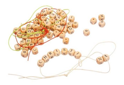 300 ks dřevěných hracích kostek lze snadno navléknout na čtyři barevné provázky, které jsou součástí balení. Můžete tak rychle vytvořit skvělé řetězce jmen a dalších slovních spojení. Nebo jen tak na stole skládat slova. Hravým způsobem se dítě naučí poznat písmena a povzbudí ho k prvním pokusům „psát“. Hlavní vlastnosti: 300 ks dřevěných písmenek, 4 ks provázkůpodporuje rozvoj jemné motoriky vhodné pro hravý trénink koncentraceděti se naučí číst a psát