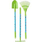 Hurá na zahradu! Mladí zahradkáři Vám rádi pomohou s touto velkou sadou zahradního nářadí. Stačí si nasadit rukavice a mohou začít motykou, hráběmi, rýčem, kolečkem a dalšími nástroji pomáhat a rozvíjet své zahradnické zkušenosti. Všechny díly jsou vyrobeny z vysoce kvalitního, jemně opracovaného kovu a díky svému dětskému designu a jarním barvám potěší každého malého zahrádkáře. Hlavní vlastnosti: součástí balení je vše dle obrázkuideální velikost pro dětirozvíjí motoriku, rovnováhu a vztah k příroděvyrobeno z kvalitních materiálů kovu a dřevakolečko má plastové kolo s pevnou bezvzduchovou gumovou pneumatikou