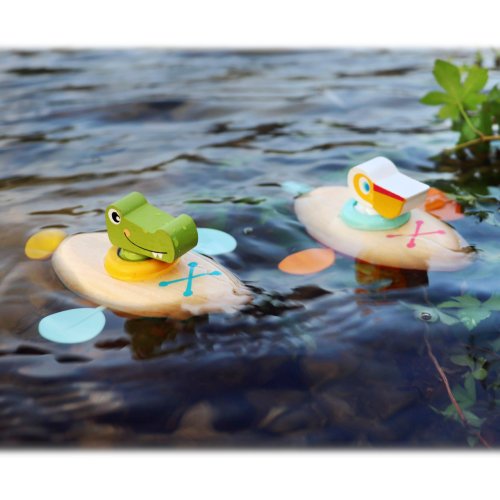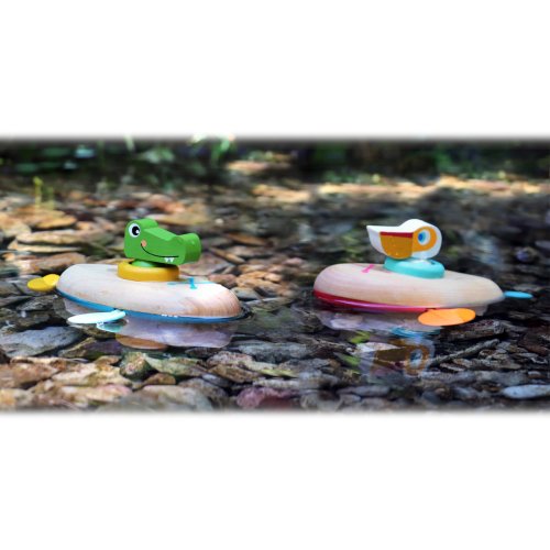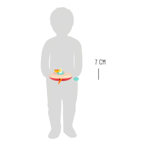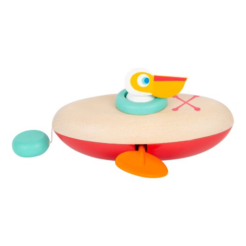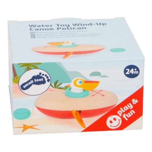Malý pelikán dostal zelenou a může vyjet na plavbu. Jeho kánoe je vyrobená ze dřeva a plastu, po vodě dokáže plavat úplně sám – má natahovací mechanismus. S touto hračkou si děti užijí ve vodě mnoho zábavy. Vodní hračky vyrobené ze dřeva jsou ekologičtější alternativou plastových a gumových hraček. Při hře s pelikánem se děti naučí o principu příčiny a následku, díky natahovacího mechanismu. Pro delší životnost hračky ji po vytažení z vody pořádně osušte. Hlavní vlastnosti: využití ve vaně či na bazéněnatahovací mechanismus umožňuje otáčení bočních pádelvhodné pro rozvoj fantazie a koordinace