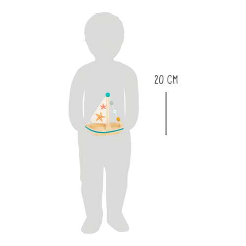 Všechny kapitány prosím o pozornost! S touto dřevěnou plachetnicí si děti nastaví kurz do světa plného vodních radovánek. Když mladí námořníci vytáhnou kotvu, už je nic nezastaví v jejich hře ať už ve vaně, na bazéně nebo u moře. Plachetnice je prostorná, takže do ní mohou postavit vlastní figurky. Plachetnice je dekorována dřevěnými korálky a potiskem hvězdic. Vodní hračky vyrobené ze dřeva jsou ekologičtější alternativou plastových a gumových hraček. Pro delší životnost hračky ji po vytažení z vody pořádně osušte. Hlavní vlastnosti: využití ve vaně, na bazéně nebo u mořehra podporuje fantaziipři plavbě v přírodě je poháněna větrem