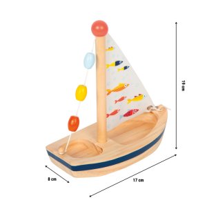 Ahoj, malí objevitelé!Tato dřevěná plachetnice zve děti do světa dobrodružných námořních her. Díky své praktické velikosti je ideálním společníkem pro vodní radovánky – ať už doma ve vaně, nebo na letním výletě k vodě. Jako dřevěná hračka podporuje udržitelný způsob hraní a představuje skvělou alternativu k plastovým lodím. Plachta s roztomilými ilustracemi rybiček, malé dřevěné korálky jako dekorativní prvek, dostatek prostoru na palubě pro figurky a pevné zpracování dělají z této lodi odolnou a zároveň stylovou hračku. Tato ekologická vodní hračka je malá, lehká a ideální na cesty. Po každém použití ji stačí důkladně osušit – a může znovu vyplout na další dobrodružnou plavbu. Skvělý tip na dárek pro všechny malé milovníky vody. Hlavní vlastnosti: plachetnice z odolného dřeva s potištěnou látkovou plachtouideální hračka do vany, brouzdaliště i bazénunabízí dostatek prostoru na palubě pro malé figurkykrásné detaily, jako jsou dřevěné korálky a motivy rybičekudržitelná alternativa k plastovým vodním hračkámpraktická velikost – vejde se do každé plážové taškypo hraní stačí osušit pro delší životnost