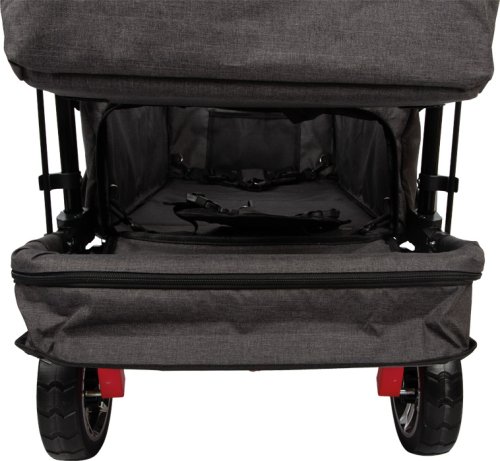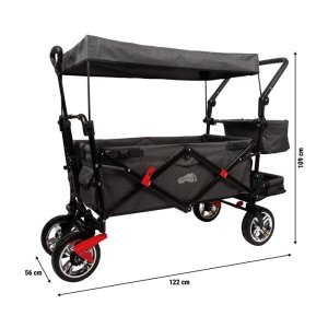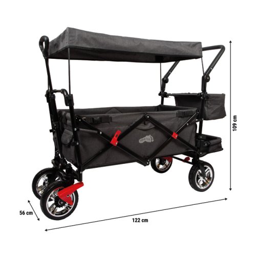 Univerzální parťák pro malá i velká dobrodružství! Tento skládací vozík je skvělým pomocníkem na každém výletě, ať už vyrážíte na rodinnou procházku, piknik do přírody, nebo třeba na výlet se psem! Zaujme promyšleným designem a chytrými detaily, které ocení každý aktivní rodič. Díky odnímatelné stříšce, pláštěnce a boční plachtě jste připraveni na každé počasí. Praktický boční otvor umožní snadné nastupování pejskovi, nebo usnadní převoz delších předmětů. Skvělý pomocník pro každodenní použití i víkendová dobrodružství! Po použití lze vozík jednoduše složit do kompaktního tvaru, ochranný obal je součástí balení. Dvě madla umožňují pohodlné tlačení i tažení, výškově nastavitelná rukojeť se přizpůsobí každému uživateli. Odnímatelná stříška chrání před sluncem a lehkým deštěm, pláštěnka poskytuje extra ochranu v nepříznivém počasí. Odolný, praktický a všestranný společník pro každou rodinu! Hlavní vlastnosti: stabilní kola s protiskluzovým vzorkem a parkovacímí brzdaminastavitelná rukojeť pro pohodlné řízeníbezpečnostní popruhvšité kapsy a extra úložný prostor