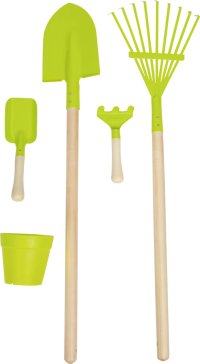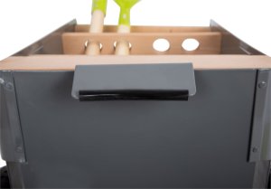 Dětský zahradní set pro malého zahradníka a pěstitele. Hračka je vyrobena z kvalitního dřeva a oceli. Sada je tvořena kovovým vozíkem na kolečkách s dřevěnými držáky na nářadí. Součástí vozíku jsou rýč, hrábě, lopatky, hraběčky a květináč. Rozměry vozíku jsou cca 27 x 30 x 57 cm. Výška madla vozíku je cca 57 cm. Vhodné pro děti od 3 let.