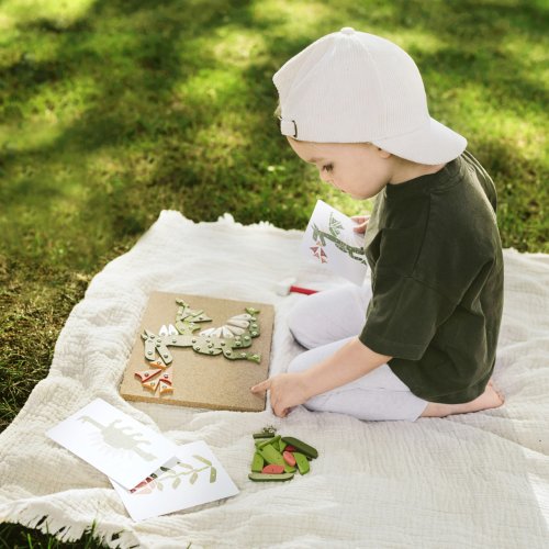 Obsáhlá kreativní hrací sada pro milovníky přírody! V balení najdete korkovou podložku, dřevěné kladivo, připínáčky a mnoho dílků z laminovaného dřeva v rozdílných tvarech a barvách. V krabici, která je vhodná i na uschování této hračky, najdete šest obrázkových předloh.Klasická zatloukací hra v moderních barvách a nesmrtelném designu, s kterou si děti mohou vytvořit obrázky rostlin, dinosaurů či čehokoliv jiného. Mohou se řídit obrázkovými předlohami nebo tvořit dle vlastní představivosti. Hračka pomáhá s rozvojem kreativity, trénuje zručnost, zlepšuje koordinaci ruka-oko a rozeznávání barev a tvarů. Zatloukací sada je vhodná pro děti malé i větší. Hlavní vlastnosti: zatloukací hra s rozsáhlým výběrem motivůdřevěné kladívko, připínáčky, korková podložkadílky různých tvarů a barevděti si procvičí motoriku a rozeznávání tvarů a barevmoderní barevné schémazlepšuje zručnost a koordinaci ruka-oko