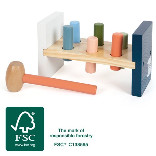 Tato motorická klasika vyrobená z certifikovaného dřeva FSC® přináší do dětského pokoje radost z klepání. Dřevěná hra zatloukačka vybízí děti, aby si vyzkoušely svou sílu tím, že pomocí kladívka zarazí dřevěné válce vyčnívající z lavice. Jakmile jsou všechny válce dole, lavici lze snadno převrátit a zábava začíná znovu. Boční potisk ledního medvěda odrážejícího se na vodní hladině také dává vizuální smysl, když je lavice obrácena a hraje se vzhůru nohama. Skvělá zábava pro všechny malé siláky. Hra, která hravě ilustruje principy příčiny a následku. Trénuje koordinaci ruka-oko a motoriku. Moderní barevné provedení v jemných arktických barvách dělá z motorické hračky dekorativní poutač. Hlavní vlastnosti: rozvíjí koordinaci ruka-okorozvíjí motoriku a obratnostrobustní a odolné provedenípodněcuje kreativní a nápaditou hru Značka a certifikát FSC® (Forest Stewardship Council) zaručuje, že dřevo, ze kterého byl produkt vyroben, nebylo vytěženo nelegálně a pochází z lesů obhospodařovaných šetrným či přírodě blízkým způsobem, ve kterém jsou dodržovány přísné environmentální a sociální požadavky. Značka FSC® na výrobku znamená, že svým nákupem pomáháte chránit lesy a podporujete šetrné, odpovědné či přírodě blízké hospodaření, díky kterému jsou naše lesy stabilnější, zdravější, mají přirozenou druhovou skladbu a lépe odolávají negativním následkům klimatických změn.