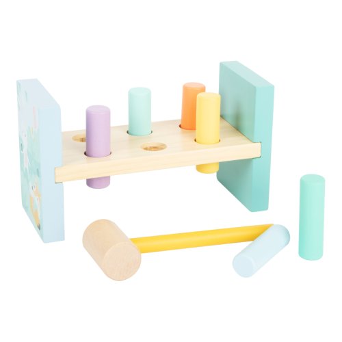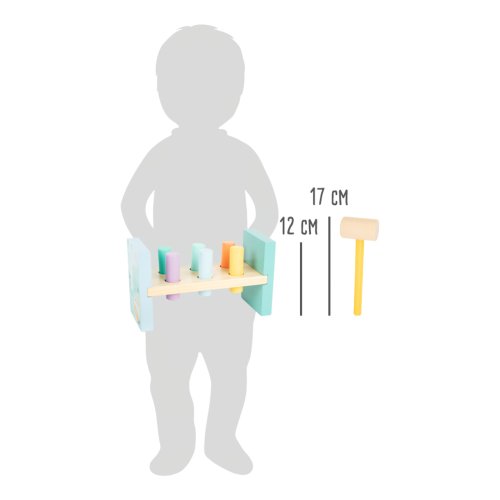 I zatloukání může být stylové! Se zatloukací hračkou v pastelových barvách si děti mohou změřit svou sílu. Klasická hra, která trénuje koordinaci ruka-oko a motoriku dětí. Zatloukačka má krásné barvy a ilustraci zvířátek. Po zatlučení všech kolíků hračku jednoduše otočte. Krásná zatloukací hračka je součástí produktové řady „Pastel“ a zaujme vysokým viditelným podílem dřeva a moderním zabarvením v pastelových barvách. Hlavní vlastnosti: ilustrováno, jemné pastelové barvyrobustní a odolné provedení