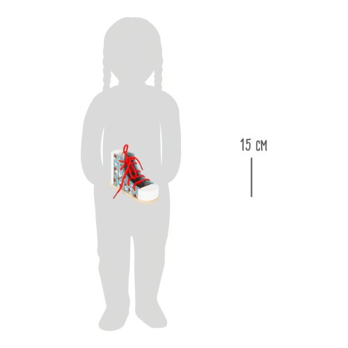 Aha, takže takhle se vážou boty! S touto praktickou dřevěnou botou v moderním designu se děti mohou naučit vázat své tkaničky. Zároveň si procvičí i trpělivost a motorické dovednosti. Stabilní bota, která ustojí všechny pokusy zavazování. Pro děti může být vázání tkaniček opravdu těžké, proto je tato bota ideální učební pomůckou. Vhodné již pro školkové děti. Hlavní vlastnosti Stabilní pomůckaVeselý potiskVhodná délka tkaničky