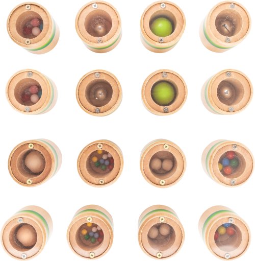 Poslouchejte! S tímto zvukovým pexesem v designu Tuze Hladové Housenky si děti užijí mnoho zábavy. Cílem je rozlišit rozdílné zvuky a pojmenovat je. Třepáním a pečlivým posloucháním mohou hráči rozeznat, které 2 nádobky patří k sobě. Může pomoci také váha nádobky. Vespod najdete okýnko, díky kterého jednoduše zkontrolujete obsah nádobky. Zábava pro celou rodinu! Kdo posbírá nejvíce párů? Hlavní vlastnosti: Dřevo, kov, syntetikaTrénuje pamětTrénuje hmat a sluch