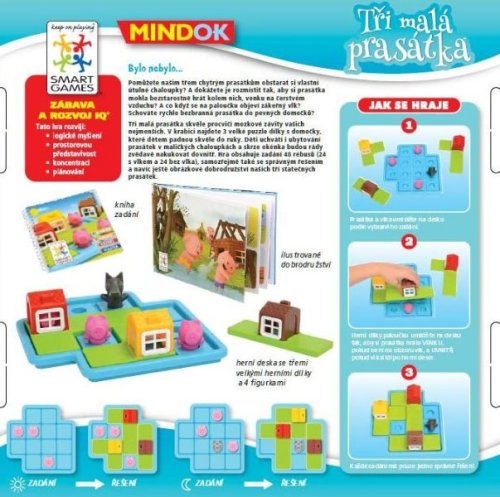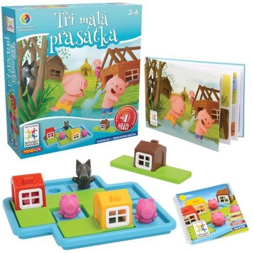 Pomůžete našim třem chytrým prasátkům obstarat si vlastní útulné chaloupky? A dokážete je rozmístit tak, aby si prasátka mohla bezstarostně hrát kolem nich, venku na čerstvém vzduchu? A co když se na paloučku objeví zákeřný vlk? Schováte rychle bezbranná prasátka do pevných domečků?