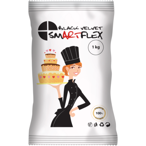 Černá, extra pružná hmota s vynikajícími vlastnostmi, vhodná zejména k potahování dortů a modelování figurek .