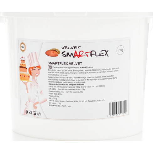 Potahovací a modelovací hmota bílé barvy s mandlovou příchutí, ideální na potahování dortu i modelování velkých dekorací. Hmotnost 7 kg.