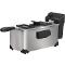 Nádoba fritézy s objemem 3 l Umožňuje přípravu až 1 kg potravin Nádoba z nerezové oceli Víko s průhledem pro plnou kontrolu přípravy jídla Pohodlné mechanické ovládání Nastavitelná regulace teploty od 90 °C do 190 °C Indikace provozu Protiskluzové nožičky Příkon 2200 W