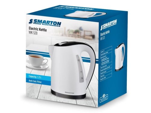 Varná konviceSmarton WK 520 Objem 1,7l Oboustranný ukazatel hladiny vody Dvojitý bezpečnostní systém: Automaticky se vypne, když je dosaženo bodu varu Ochrana proti přehřátí při zapnutí bez vody Kontrolka …