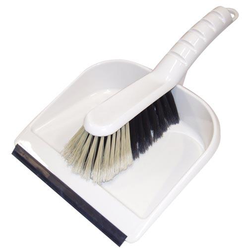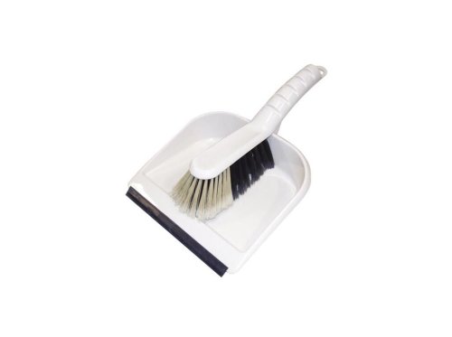 Souprava lopatky se smetáčkem. Lopatka má gumovou hranu pro lepší nabírání smetí. Smetáček lze uchytit do rukojeti lopatky a zavěsit.