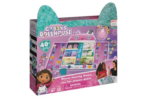 Ahoj, Gábi. Vezmi nás do domku. Jaké se chystá překvapení? Velká kočičí party. Čas zmenšit se a vyzdobit domek na party se všemi kamarády. Po cestě sbírejte přívěsky na svou čelenku. Ten, kdo jich nasbírá nejvíc, vyhraje speciální přívěsek ve tvaru srdce. Pomozte Gábině a jejím kamarádům připravit se na přespání. Procházejte pokojíčky domku a sbírejte přívěsky. Ten, kdo má na konci hry nejvíc přívěsků, vyhrává. Oslavte party se všemi kamarády velkým mňau! Tato hra je pro 2–4 hráče ve věku 4 a více let. Trvá jen asi 30 minut. Pokud je váš předškolák posedlý seriálem Gábinin kouzelný domek na Netflixu, tato desková hra bude ideální volbou. Vypadá úplně jako Gábinin domek v seriálu a obsahuje 4 roztomilé čelenky s kočičíma ušima pro každého hráče a více než 40 jedinečných kartonových přívěsků. Mezi nimi jsou zábavné předměty jako nanuky, hvězdičky, květiny a samozřejmě kočičky. Nechte svou holčičku nebo chlapečka ponořit se do malého světa této deskové hry s oblíbenými postavičkami ze seriálu Gábinin kouzelný domek na Netflixu.