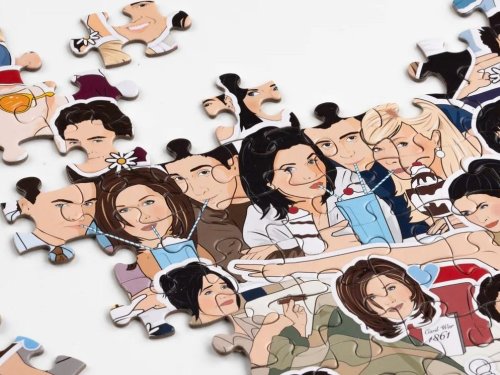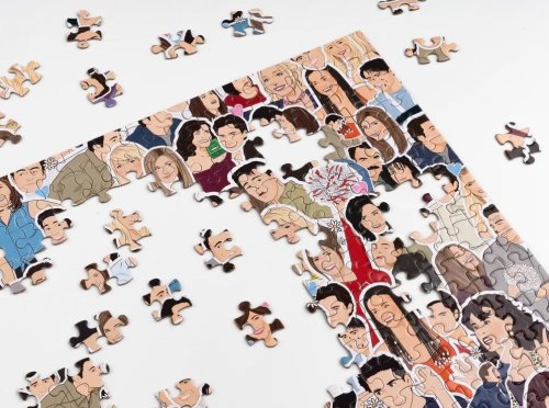 Rachel, Monica, Phoebe, Joey, Chandler a Ross. Dokonalý dárek pro všechny fanoušky nezapomenutelného seriálu Přátelé. Skládejte a vzpomínejte na zábavné momenty ze sitcomu, který už po desítky let baví celý svět. Ilustrace s důrazem na detail zobrazuje šest přátel v klasických scénách - jako třeba krocana se slunečními brýlemi a fezem, bláznivý tanec nebo spontánní svatbu ve Vegas. Kreslená koláž protagonistů kultovního seriálu v podání australské autorky Chantel de Sousa. Rozměr složeného puzzle cca 61 x 46 cm