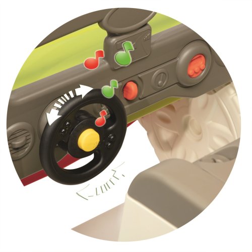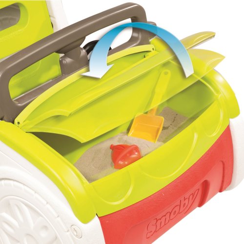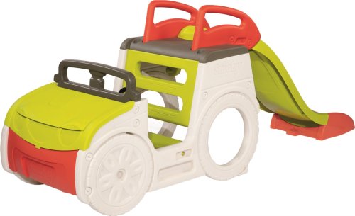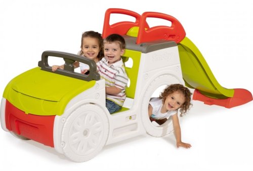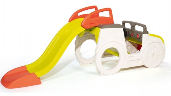Dětská herní soustava na zahradu se spoustou aktivit. Vyrobeno z kvalitního plastu, který je odolný proti UV záření. Součástí kabiny vozidla je i volant, na které je tlačítko klaksonu, které po zmáčknutí píská. Herní sestava obsahuje skluzavku o délce 150 cm, pískoviště v přední části auta, které lze využít i jako úložný prostor pro uschování hraček. Písek ani formičky nejsou součástí balení. Rozměry herní sestavy: 233 x 68 x 91 cm. Vhodné pro děti od 18 měsíců.