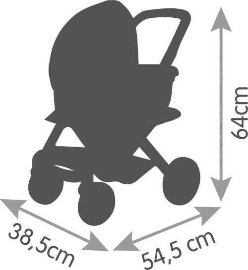 Rozměr kočárku po složení: 65 x 54 x 38,5 cm Výška k ergonomické rukojeti: 65 cm POZNÁMKA: Panenka není součástí balení.