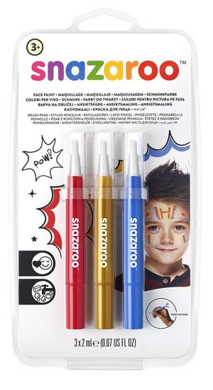 Sada štětcových per Snazaroo Brush Pen naplněných barvou pro snadné malování na obličej a tělo.